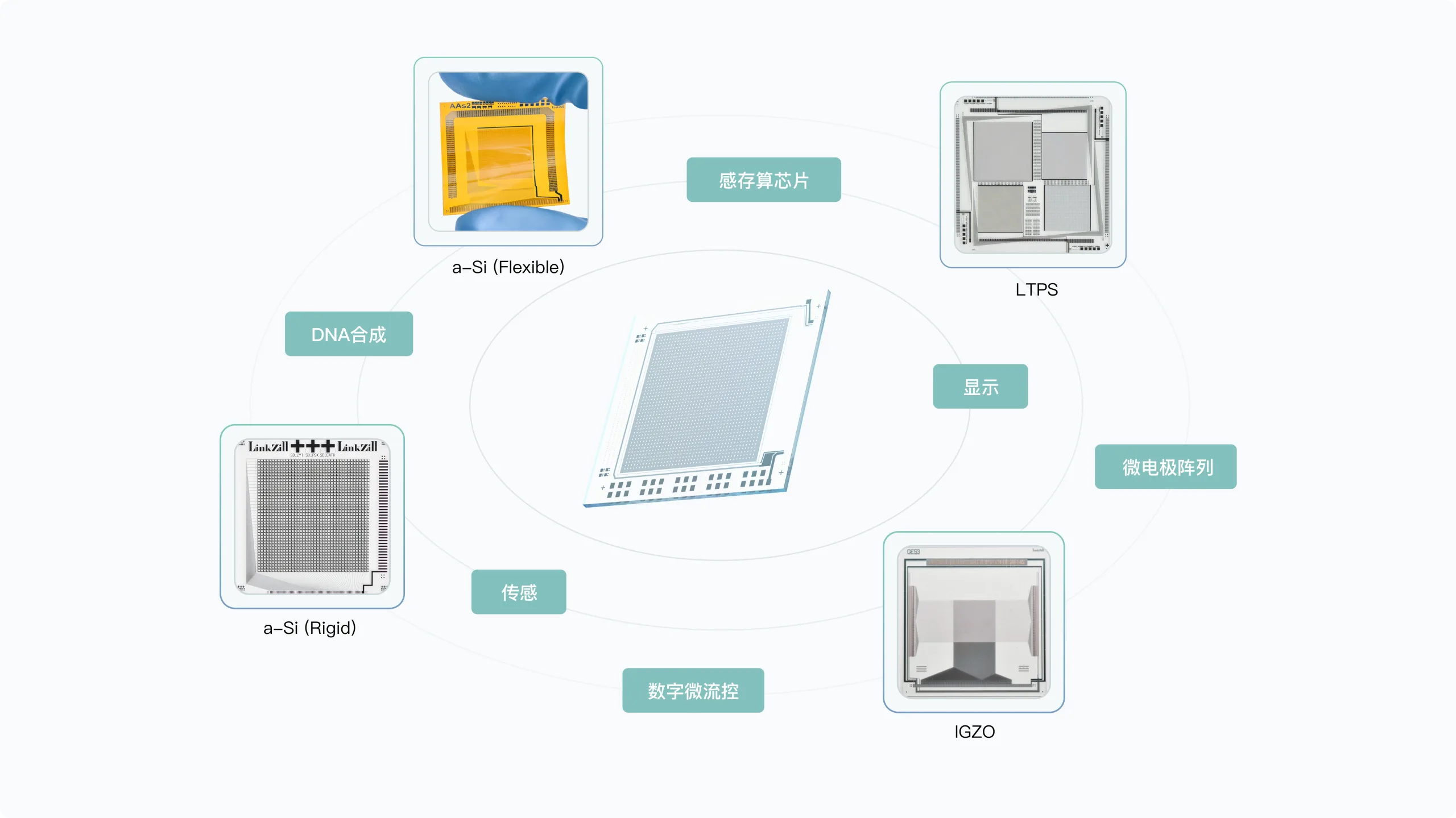面对客户的定制化需求,我们将挑选合适技术路线,精心设计和开发基于TFT的传感阵列芯片、显示阵列芯片、感存算阵列芯片,并提供全面的技术解决方案。公司可提供基于非晶硅TFT(a-Si)、氧化物TFT(IGZO)、低温多晶硅TFT(LTPS)三种技术路线的TFT定制服务,它们分别在大规模显示、高端显示及高性能传感器、中小尺寸高分辨率显示领域各有优势。TFT背板在量产线 / 中试线流片生产,遵循先进标准和质量体系,运用先进设备和自动化流程,保障产出的器件良率高、均一性佳、稳定性好。